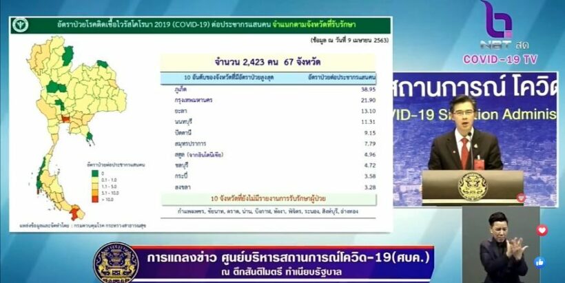 อัตราผู้ป่วยติดเชื้อโควิด-19 ณ วันที่ 9 เมษายน 2563