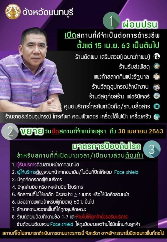 ดูเลยร้านอะไรบ้าง ! นนทบุรี ผ่อนปรนให้ธุรกิจจำเป็น กลับมาเปิดได้ 15 เมษานี้