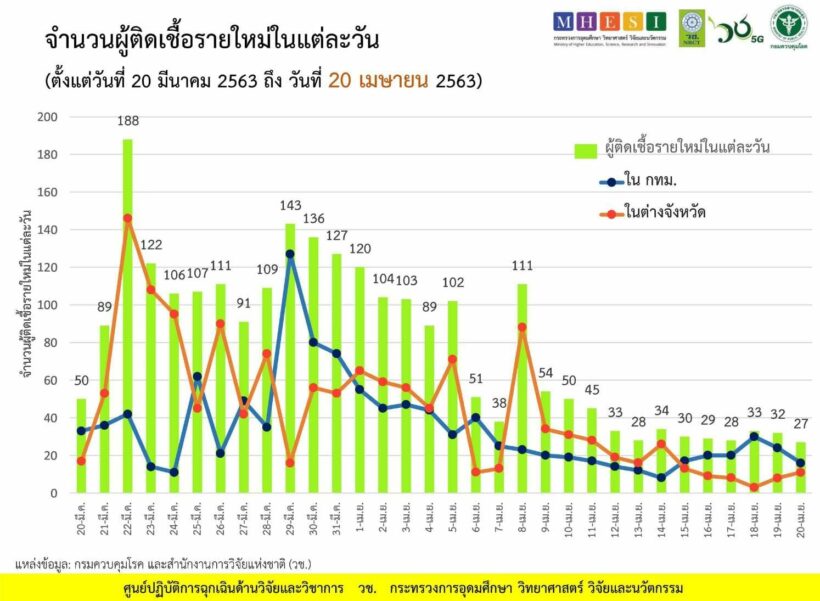 สรุปสถานการณ์โควิด-19 ประเทศไทยประจำวันที่ 20 เมษายน 2563