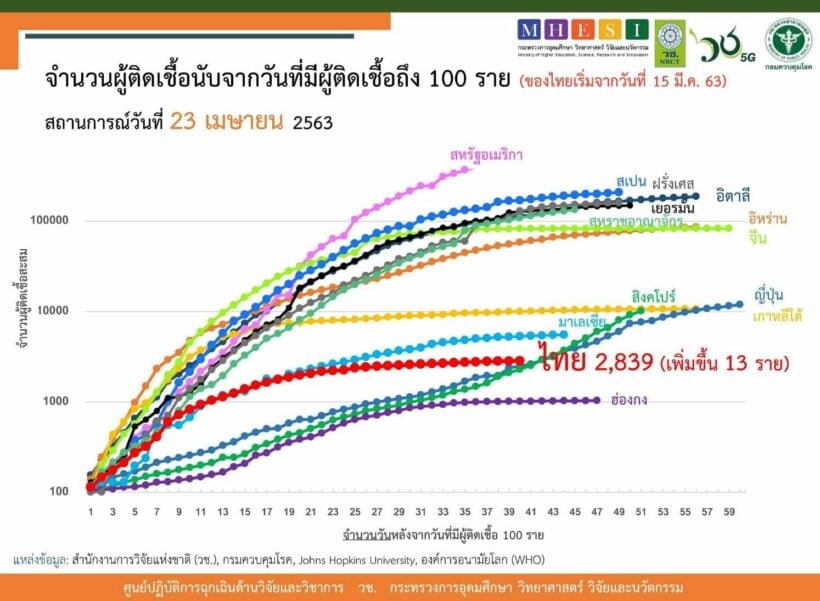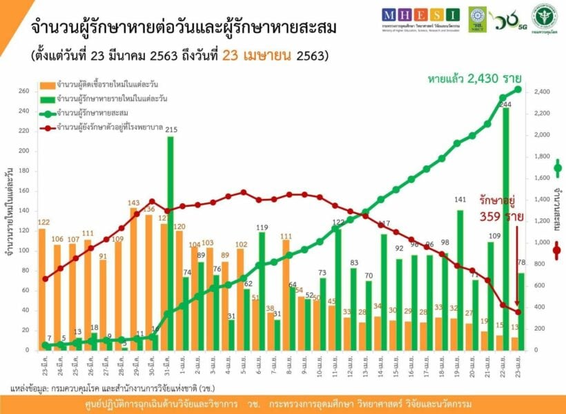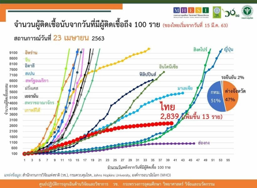 กรมควบคุมโรค และสำนักงานการวิจัยแห่งชาติ (วช.) กระทรวงการอุดมศึกษาฯ (อว.) รายงานข้อมูลสถานการณ์การติดเชื้อโควิด-19 ณ วันพฤหัสบดีที่ 23 เมษายน 2563