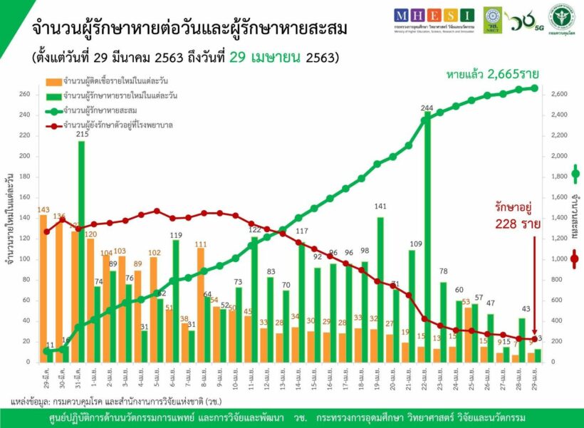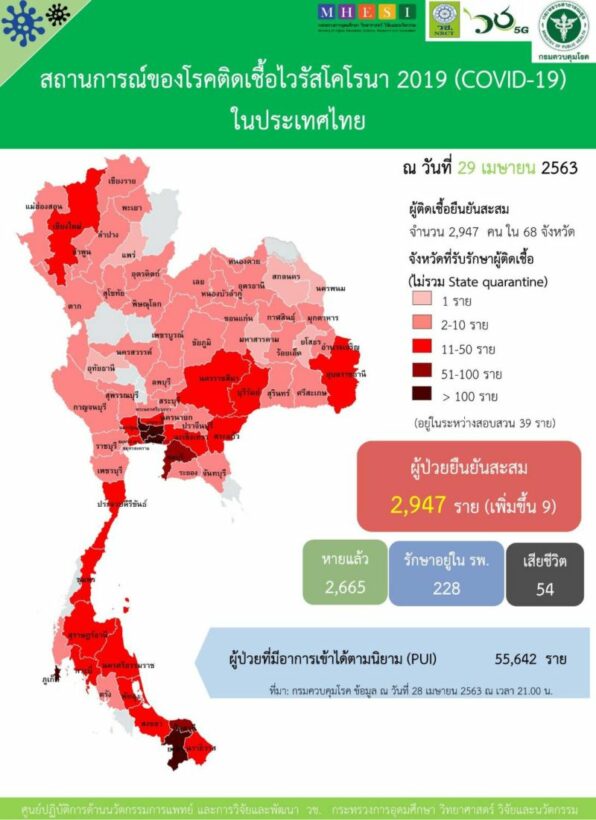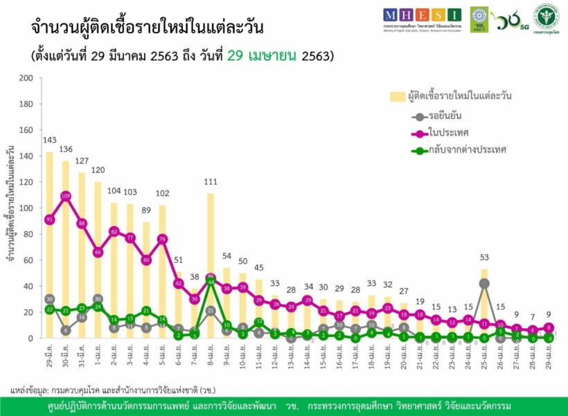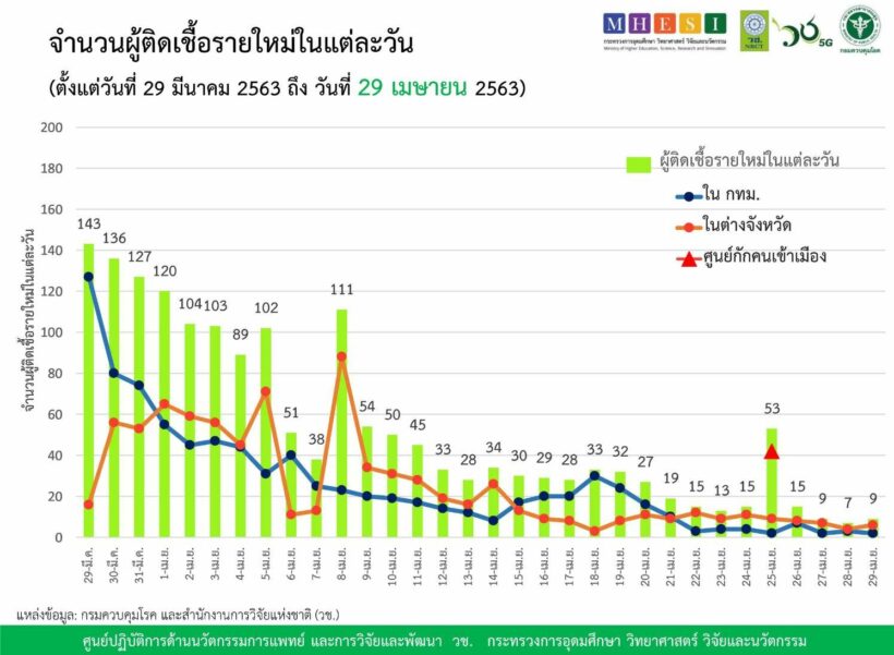 สถานการณ์โควิด-19 29 เมษายน ไทยติดเชื้อเพิ่ม 9 ราย ไม่พบผู้เสียชีวิต