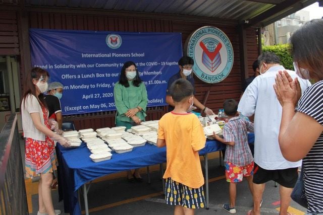 กรุงเทพฯ, ประเทศไทย, วันที่ 1 พฤษภาคม 2563: โรงเรียนนานาชาติอินเตอร์เนชั่นแนลไพโอเนียร์ส (IPS) ได้เริ่มโครงการแจกข้าวกล่องอาหารกลางวันให้แก่ประชาชนในเขตชุมชนใกล้โรงเรียน โดยเน้นอาหารที่ถูกสุขลักษณะพร้อมด้วยน้ำดื่มบรรจุขวด โดยเริ่มแจกตั้งแต่วันที่ 27 เมษายน ที่ผ่านมา