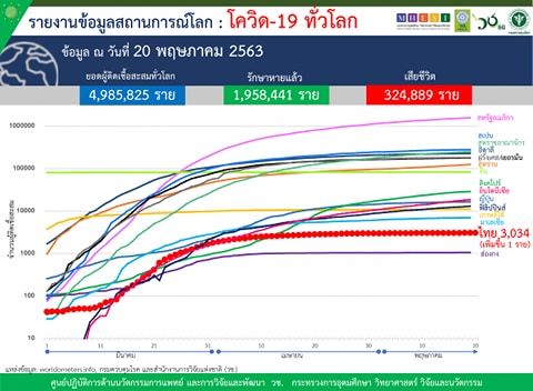 โควิด-19 20 พ.ค. ไทย – กรมควบคุมโรค และศูนย์ปฏิบัติการด้านนวัตกรรมการแพทย์ และการวิจัยและพัฒนา สำนักงานการวิจัยแห่งชาติ (วช.) กระทรวงการอุดมศึกษาฯ (อว.) รายงานข้อมูลสถานการณ์การติดเชื้อโควิด-19 ณ วันพุธที่ 20 พฤษภาคม 2563