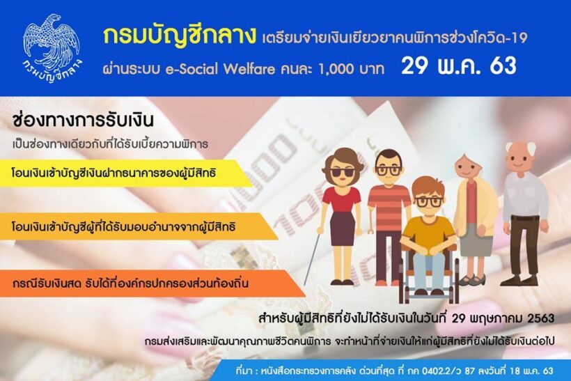 จ่ายเงินเยียวยาคนพิการ 29 พ.ค. 63 -กรมบัญชีกลาง