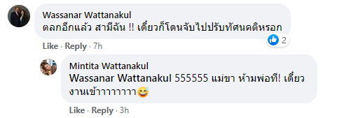 ทางด้าน วาสนา วัฒนกุล ภรรยา ก็ได้เข้ามาคอมเมนต์ว่า “ตลกอีกแล้ว สามีฉัน !! เดี๋ยวก็โดนจับไปปรับทัศนคติหรอก” ต่อมา มิ้น มิณฑิตา วัฒนกุล นักร้องนักแสดงชื่อดัง ผู้เป็นลูกสาวก็ได้เข้ามาคอมเมนต์ต่อว่า “555555 แม่ขา ห้ามพ่อที! เดี๋ยวงานเข้าาาาาาาา”