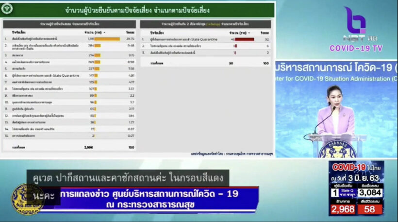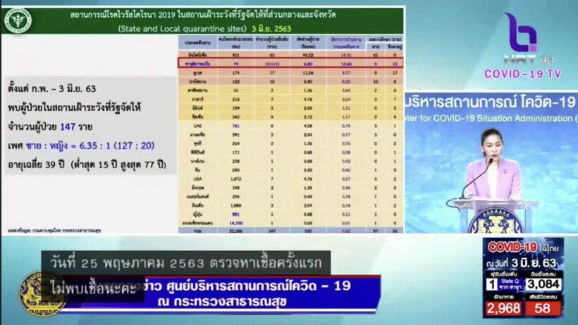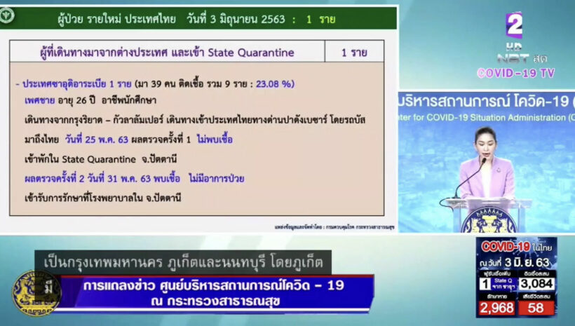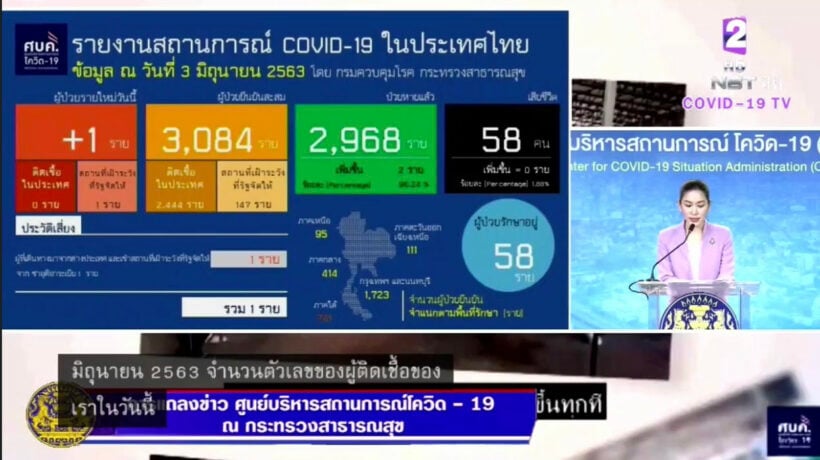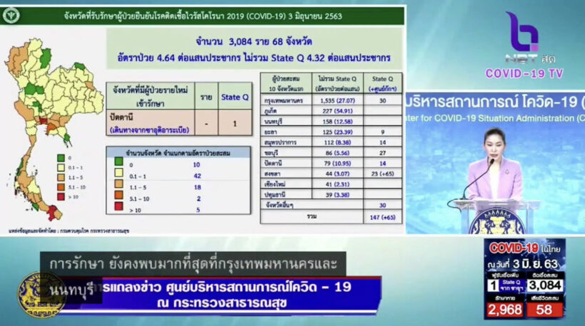 โควิด-19 3 มิ.ย. 63 – ประเทศไทย ผู้ติดเชื้อสะสม 3,084 ราย (ในสถานกักกันตัวของรัฐ พบผู้ติดเชื้อเพิ่มขึ้น 1 ราย)