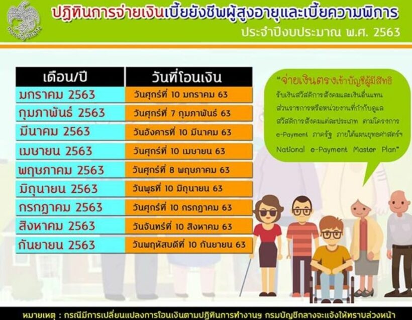 2.คนพิการที่ไม่มีบัญชีธนาคาร องค์กรปกครองส่วนท้องถิ่น (เทศบาล และ อบต.) จ่ายเป็นเงินสด คาดว่าจะจ่ายแล้วเสร็จภายใน