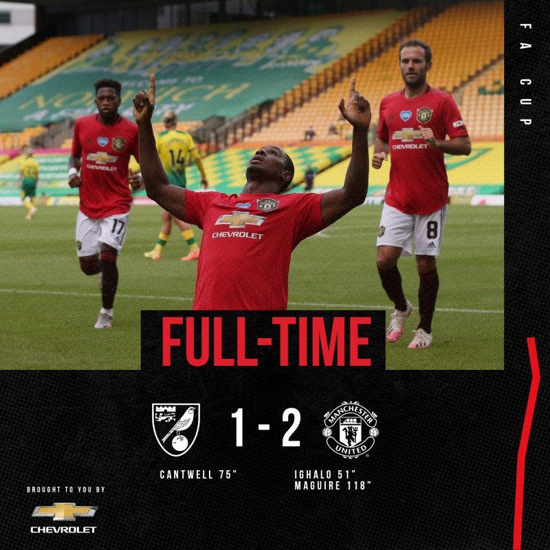 GOAL !!! นาที 118 ปีศาจแดง มาได้ประตูชัยจนได้หลังจากเอา แม็คไกวร์ ไปค้ำหน้าอยู่นานแล้ว นอริช สกัดบอลกันไม่ดีบอลขลุกขลิกไปเข้าทางกัปตันค่าตัวแพงล้มตัวยิงผ่าน ครูล เข้าไปเลย 2-1 และจบเกมด้วยสกอร์นี้ไปเลยทำให้ ปีศาจแดง ผ่านเข้าไปรอบ 4 ทีมสุดท้ายก่อนใคร