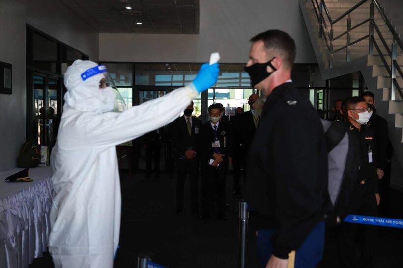 “กองทัพบกเผยแพร่ภาพ ผบ.ทบ.สหรัฐ และคณะ เข้ารับการตรวจโควิด -19 ขณะเดินทางถึงไทย”