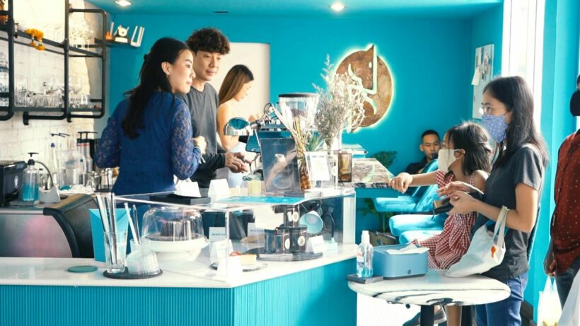 โดยเสน่ห์ของร้านตกแต่งโมเดิร์นสวยงามหรูเด่นสีฟ้าเทอร์ควอยซ์ น่านั่ง ที่สำคัญบาริสต้าร้านนี้หล่อ สวย อัธยาศัยดีทุกคน ซึ่ง “หนุ่มนุ” เผยว่า “หลังจากงานดนตรีโดนพิษโควิด-19 หันมารวมวงกับเพื่อนทำร้านกาแฟ ด้วยความเข้าใจในหารทำกาแฟที่ตนเองรัก สร้างสรรค์มิติใหม่ให้กับคอกาแฟ ด้วยเมนูซิกเนเจอร์ของทางร้านทก็จะเป็นการผสมผสานระหว่างม็อคเทลและกาแฟเข้าด้วยกันอย่างลงตัว แถมยังมีเบเกอรี่โฮมเมดอร่อยๆมาให้บริการอีกด้วย”