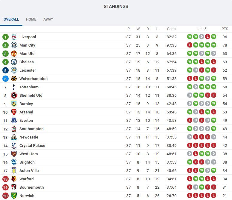 พรีเมียร์ลีก อังกฤษ ฤดูกาล 2019-2020 นัดที่ 37(คลิกที่ผลการแข่งขันเพื่อชมไฮไลท์) |