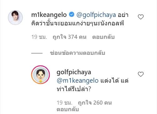 หลังจากคนเห็นแล้วหลายคนต่างก็ตะลึง และต้องขยี้ตาไปตามๆ กันว่านี่ใช่กลอ์ฟหรือเปล่า เพราะว่าสวยมาก แถมยังเหมือนผู้หญิงมากๆ ด้วย ต่อมา ไมค์ พิรัชต์ น้องชายสุดที่รัก ก็ได้เข้ามาคอมเมนต์ประโยคฮาๆ ที่ว่า “อย่าคิดว่าชั้นจะยอมแกง่ายๆ นะนังกอล์ฟ” จากนั้นกอล์ฟก็ได้ตอบกลับว่า “แต่งได้ แต่ทำได้รึเปล่า?”