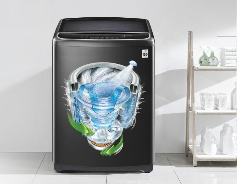 สำหรับเครื่องซักผ้าฝาบน แอลจียังคงพัฒนาเทคโนโลยีมอเตอร์ต่อตรงระบบ Inverter Direct DriveTM อย่างต่อเนื่อง เพื่อมอบประสิทธิภาพการซักผ้าที่เพิ่มขึ้น โดยช่วยถนอมเนื้อผ้าเสมือนซักด้วยมือจากการลดปัญหาผ้าพันกัน และประหยัดน้ำและพลังงานเพิ่มขึ้น พร้อมการทำงานที่เงียบ นิ่ง และทนทาน โดยแอลจีรับประกันมอเตอร์เป็นระยะเวลานานถึง 10 ปี ในขณะเดียวกัน เทคโนโลยี 6 Motion DD สามารถออกแบบการหมุนของถังซักไปในหลายทิศทางแตกต่างกันไป เพื่อประสิทธิภาพการซักและการถนอมผ้าสูงสุด ตามการเลือกโปรแกรมที่เหมาะสมกับเนื้อผ้าแต่ละชนิด นอกจากนี้ ถังซักของเครื่องซักผ้าฝาบนของแอลจียังทำมาจากสแตนเลส[4] จึงช่วยควบคุมการเจริญเติบโตของแบคทีเรียภายในถังซักได้อย่างมีประสิทธิภาพ จึงช่วยเพิ่มความมั่นใจอีกขั้นในการปกป้องดูแลสุขภาพของผู้บริโภคและสมาชิกในครอบครัวให้ปลอดภัย จากการทำความสะอาดผ้าที่มีประสิทธิภาพและถูกสุขอนามัยยิ่งขึ้น