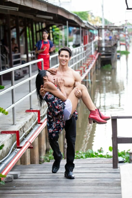 เด่นคุณ สวมบทฮีโร่ถอดเสื้อกระโดดน้ำช่วย สิตางค์ ในซีรีส์ชุมชนสมหวังหมู่ 8