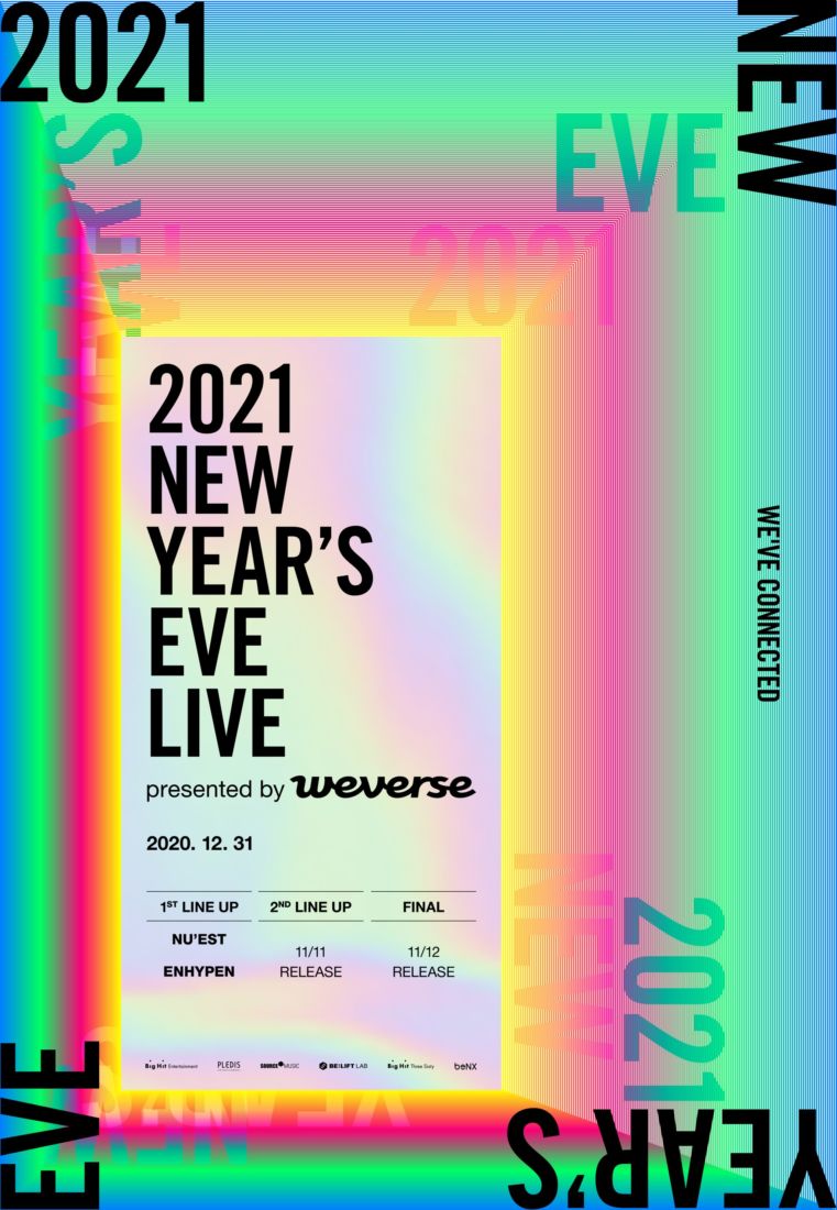“2021 NEW YEAR’S EVE LIVE นำเสนอโดย Weverse” เป็นคอนเสิร์ตแรกที่รวมศิลปิน Big Hit Labels ไว้ในงานเดียว ในคอนเสิร์ต ศิลปินจะขึ้นปีใหม่ด้วยการนับถอยหลังไปด้วยกัน การจัดที่นั่งในสถานที่ออฟไลน์จะถูกจำกัดและเว้นระยะห่าง ให้ห่างกันตามแนวทางของรัฐบาล ในกรณีที่คอนเสิร์ตออฟไลน์ถูกยกเลิกเนื่องจากข้อบังคับของรัฐบาล ทางคอนเสิร์ตจะสตรีมสดทางออนไลน์เพียงทางเดียว และจะทำการคืนเงินสำหรับบัตรออฟไลน์ ศิลปินภายใต้ Big Hit Labels ได้แก่ NU’EST, BTS, GFRIEND, SEVENTEEN, TXT และ ENHYPEN