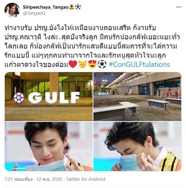ไม่พอ ยังเชิญ น้าค่อม ชวนชื่น ศิลปินตลกในดวงใจของหนุ่มกลัฟมาร่วมสร้างเสียงหัวเราะและความสนุกสนานภายในงานวันนี้อีกด้วย โดยนอกจากนี้ยังลงทุนซื้อป้ายโฆษณาบนบีทีเอส เพื่อกระจายความหล่อและความน่ารักของหนุ่มกลัฟให้ทุกคนได้รับชมกัน ทำเอาแฮชแท็ก #ConGULFtulations ที่แฟนๆ สร้างขึ้นเพื่อแสดงความยินดีให้หนุ่มกลัฟ พุ่งทะยานติดเทรนด์ทวิตเตอร์โลกอันดับที่ 1 ไปเลย!
