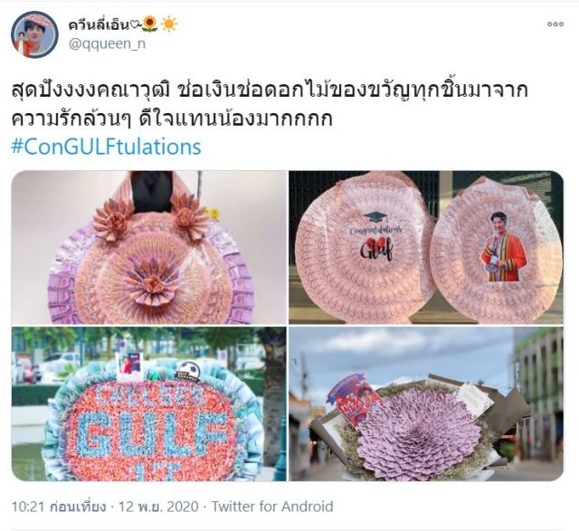 โดยเหล่าแฟนคลับ ลูกบอลของคุณบิ๊กกลัฟ หวานใจมิวกลัฟ รวมถึง ชาวมิวเลี่ยน แฟนคลับของนักแสดงหนุ่ม มิว ศุภศิษฏ์ จงชีวีวัฒน์ ก็ได้มาร่วมแสดงความยินดีกับบัณฑิตป้ายแดง งานนี้ทุ่มสุดตัว จัดเต็มทั้งช้อดอกไม้เงิน ของขวัญต่าง ๆ รวมไปถึงป้ายแบ็คดรอปที่ทำจากธนาบัตรรวมทั้งหมดกว่าล้านบาท