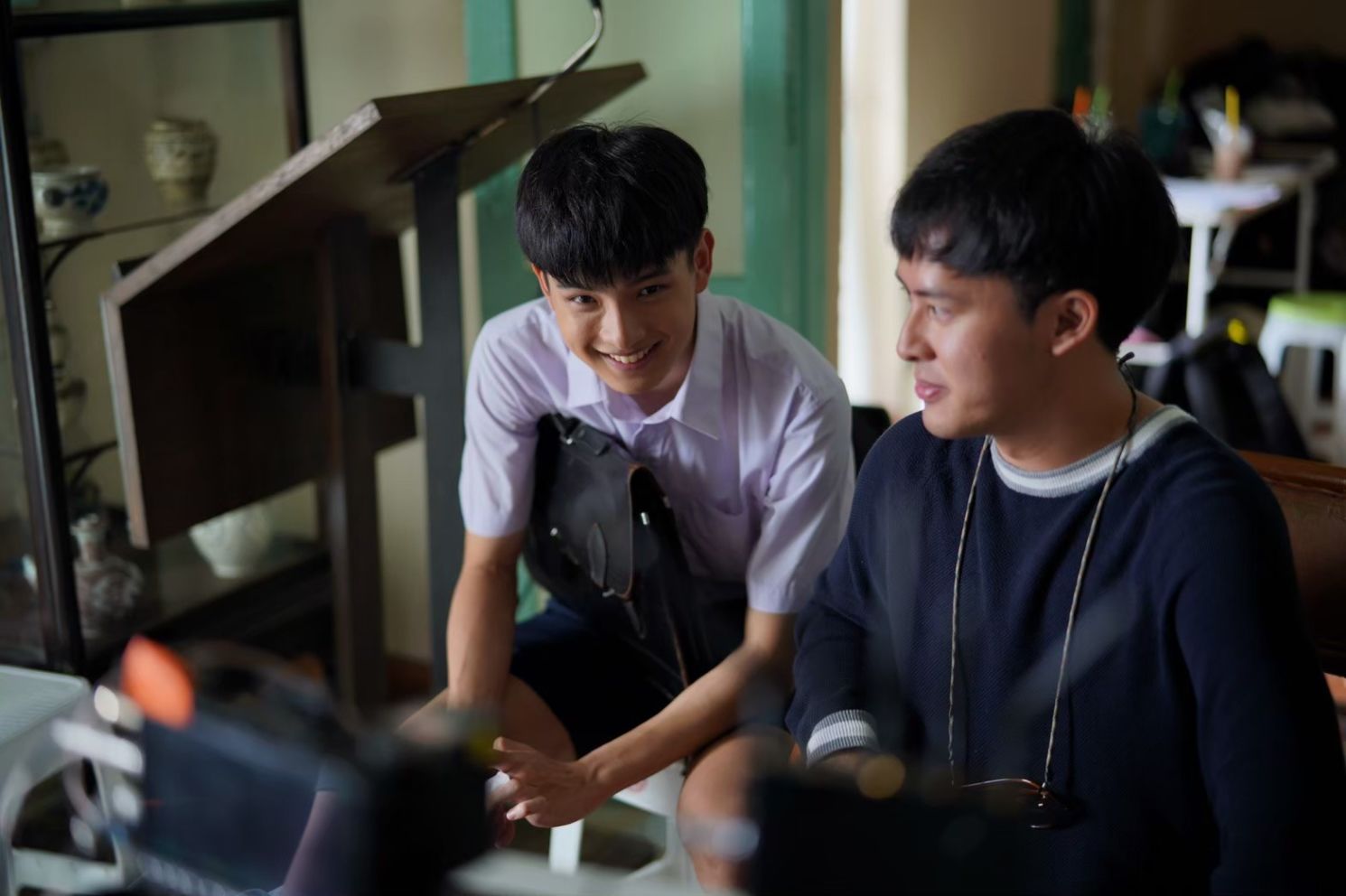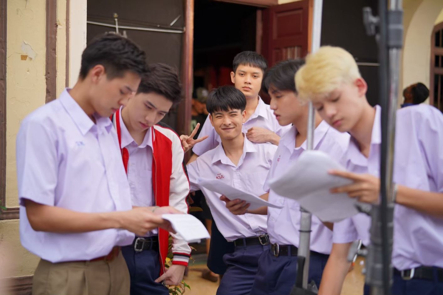 ตอนที่ออกกองลงสนามจริง ด้วยความที่เป็นเด็กใหม่ที่ยังไม่ค่อยรู้เรื่อง วันแรก ๆ รู้สึกเกร็ง ๆ งง ๆ เหมือนยังปรับตัวไม่ค่อยทัน ยิ่งได้เข้าฉากกับพี่ ๆ ที่เขาเคยมีประสบการณ์ทางการแสดงมาก่อน ก็ยิ่งลุ้นมากครับ