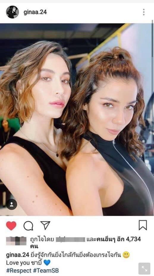 นอกจากนี้ชาวเน็ตยังขุดข้อความในอดีตของ จีน่า ที่เคยโพสต์ตอน เทีย The Face คบแฟนเก่าของ ซาบีน่า The Face ซึ่งตอนนั้น จีน่า ประกาศอยู่ทีมซาบีน่า พร้อมข้อความว่า “ยิ่งรู้จักกันยิ่งใกล้กันยิ่งต้องเกรงใจกัน #Respect”