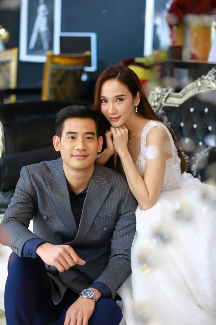 อั้ม พัชราภา เผย ชุดเจ้าสาว กับเดรสสีขาว ท่อนบนแขนกุด ท่อนล่างเป็นกระโปรงยาวฟูฟ่องราวกับเจ้าหญิง ในละคร จากศัตรูสู่หัวใจ