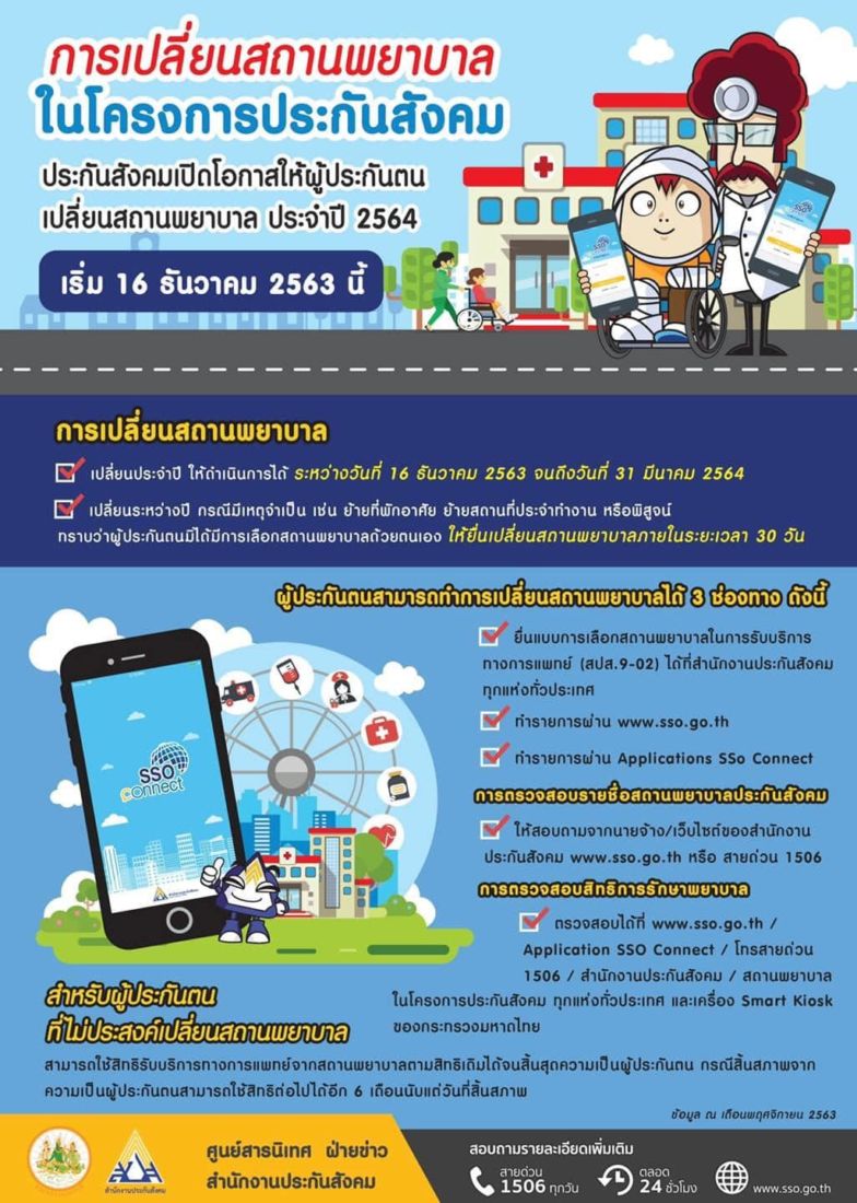 ความคืบหน้าสำหรับผู้ประกันตนอยู่ในระบบประกันสังคม สำนักงานประกันสังคมจะเปิดให้เปลี่ยนโรงพยาบาล สถานพยาบาล ประกันสังคม ประจำปี 2564 ตั้งแต่วันที่ 16 ธันวาคม 2563