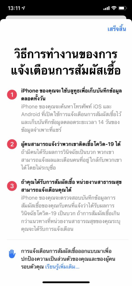 วิธีเปิดระบบ แจ้งเตือนการสัมผัสเชื้อ ไอโฟน