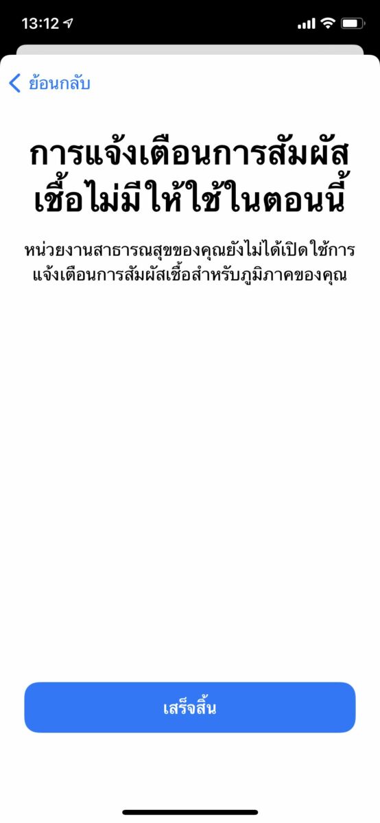 แต่น่าเศร้า เมื่อ Thethaiger ทดลองตรวจสอบเปิดการใช้งานฟีเจอร์นี้ เลือกประเทศไทย พบว่าไม่สามารถใช้งานได้เนื่องจาก หน่วยงานสาธารณสุขของไทยยังไม่ได้เปิดใช้การแจ้งเตือนการสัมผัสเชื้อสำหรับภูมิภาคที่อาศัยอยู่