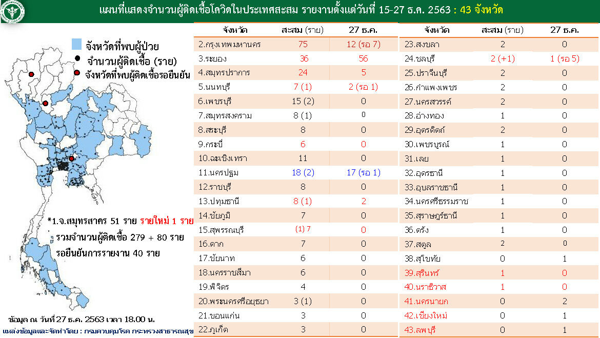 (ข้อมูล ณ วันที่ 27 ธ.ค. 2563 เวลา 18.00 น.)