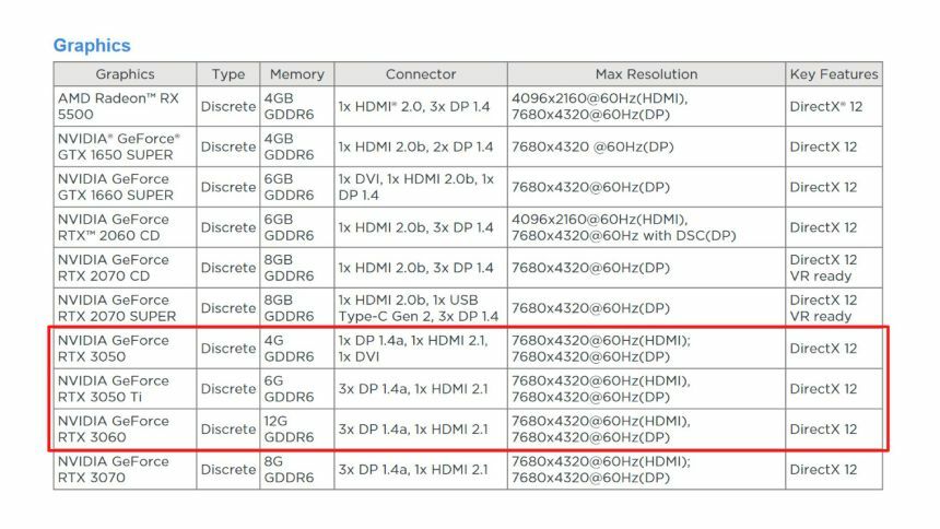 ก็ยังคงมีข่าวหลุดออกมาเรื่อย ๆ สำหรับการ์ดจอในตัว RTX โดยในคราวนี้นั้นเป็นการแสดงตัวออกมาของ 3050, 3050 Ti และ 3060 ที่คาดว่าจะเป็นตัวที่ได้รับการปรับปรุงใหม่