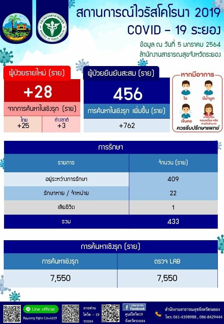 5 ม.ค. 64 ระยอง พบ ผู้ป่วยโควิด-19 เพิ่ม 28 ราย
