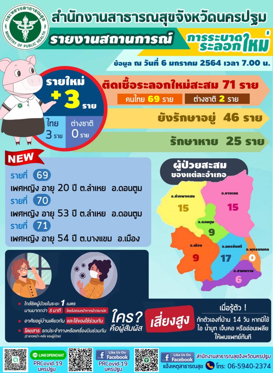 6 ม.ค. 64 นครปฐม พบ ผู้ป่วยโควิด-19 เพิ่ม 3 ราย