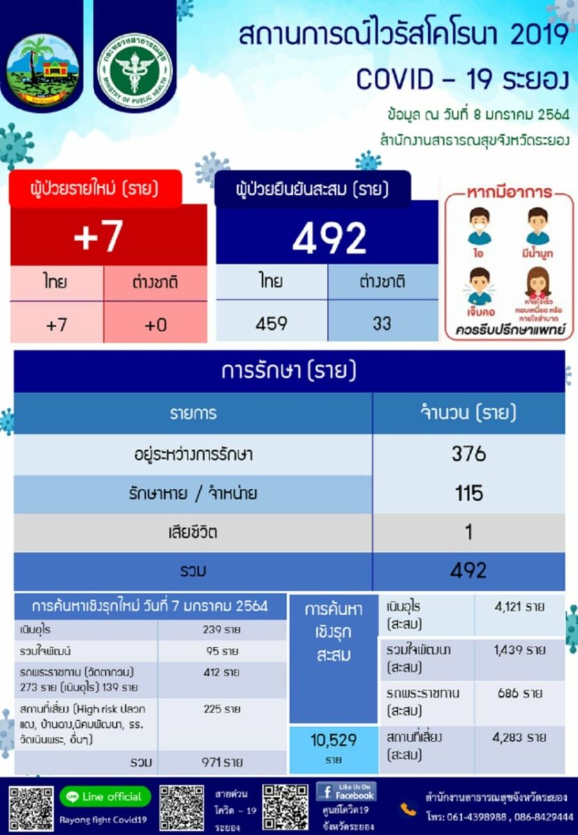 8 ม.ค. 64 ระยอง พบ ผู้ป่วยโควิด-19 เพิ่ม 7 ราย