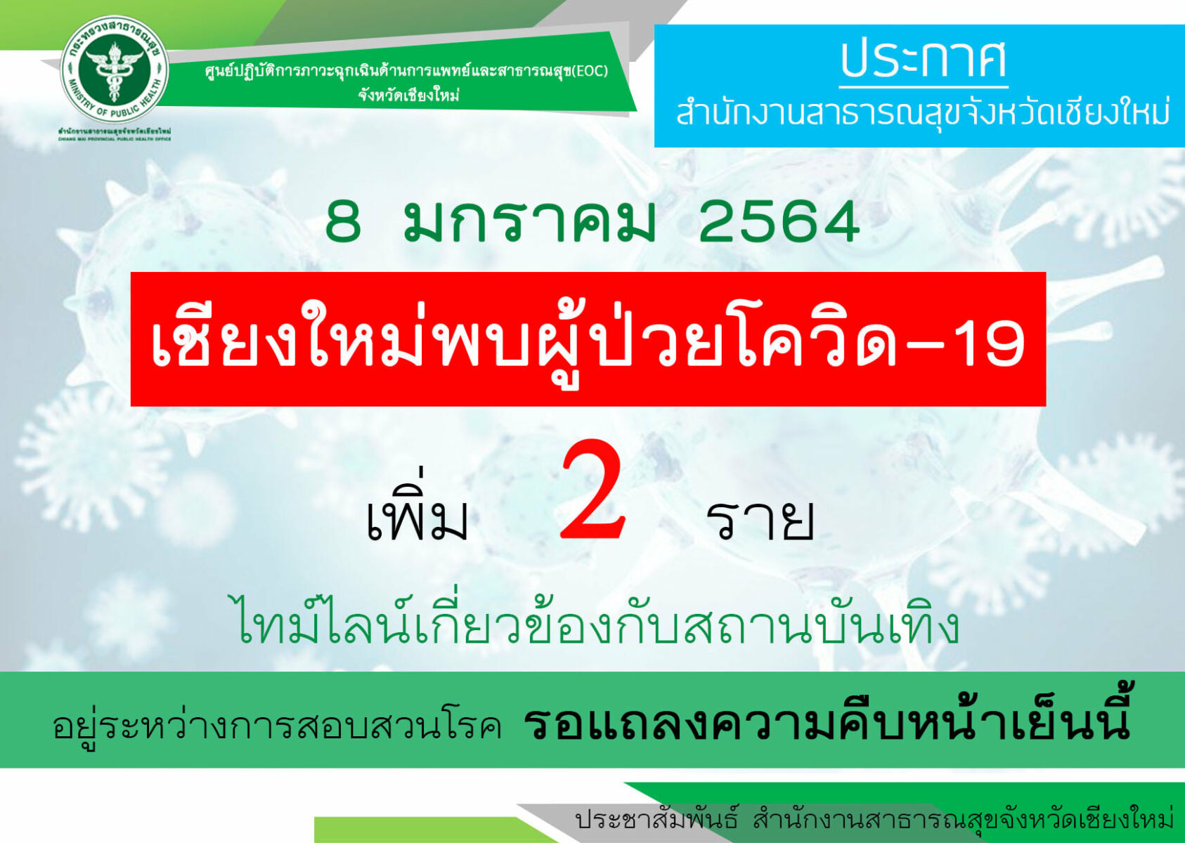 8 ม.ค. 64 เชียงใหม่ พบ ผู้ป่วยโควิด-19 เพิ่ม 2 ราย
