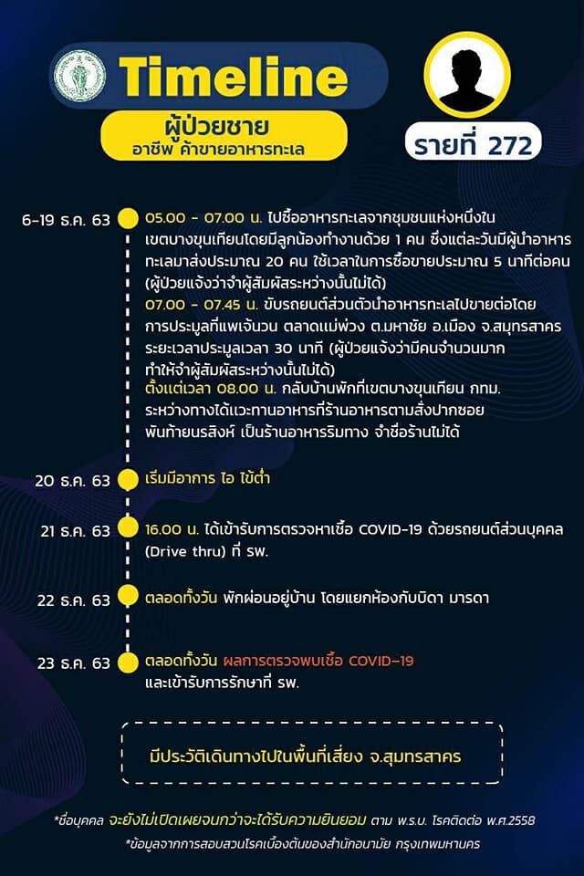 เผย ไทม์ไลน์ ผู้ป่วยโควิด-19 กรุงเทพ รายที่ 264-272
