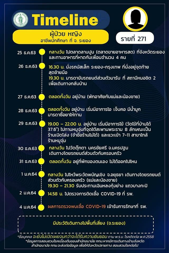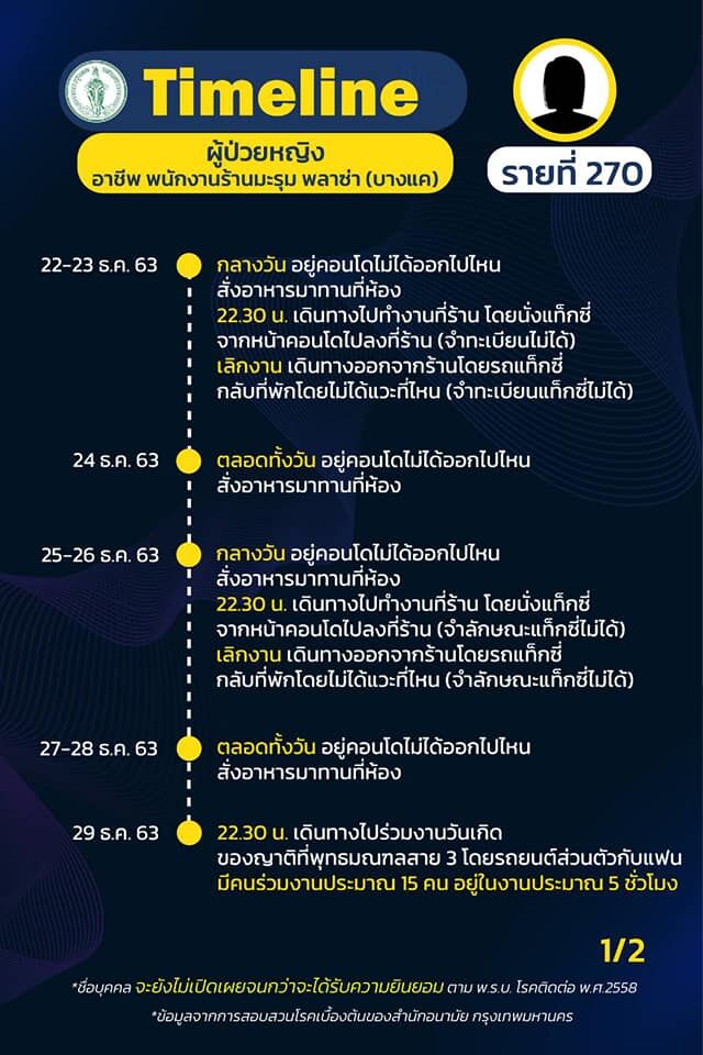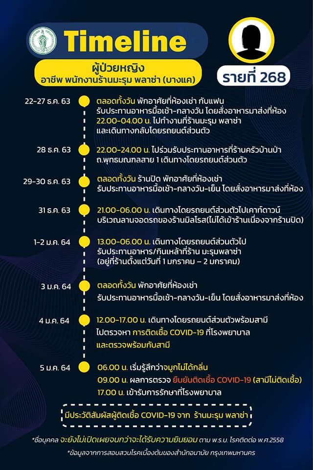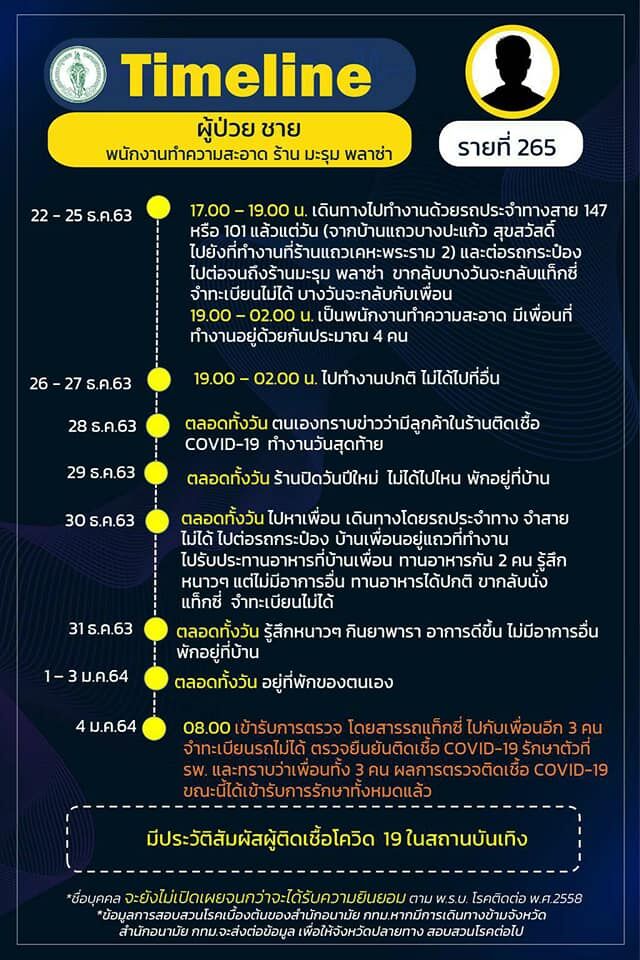 เผย ไทม์ไลน์ ผู้ป่วยโควิด-19 กรุงเทพ รายที่ 264-272
