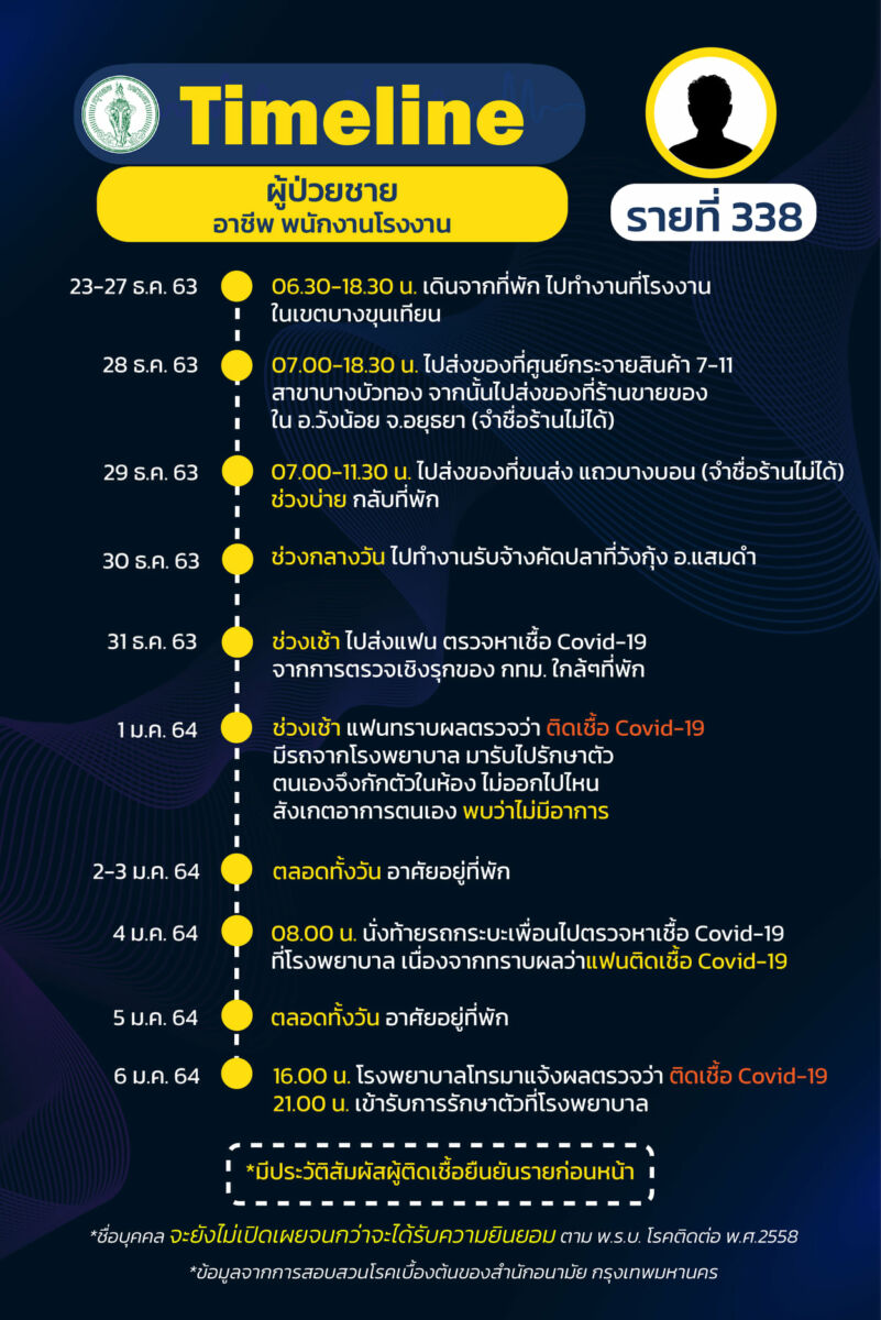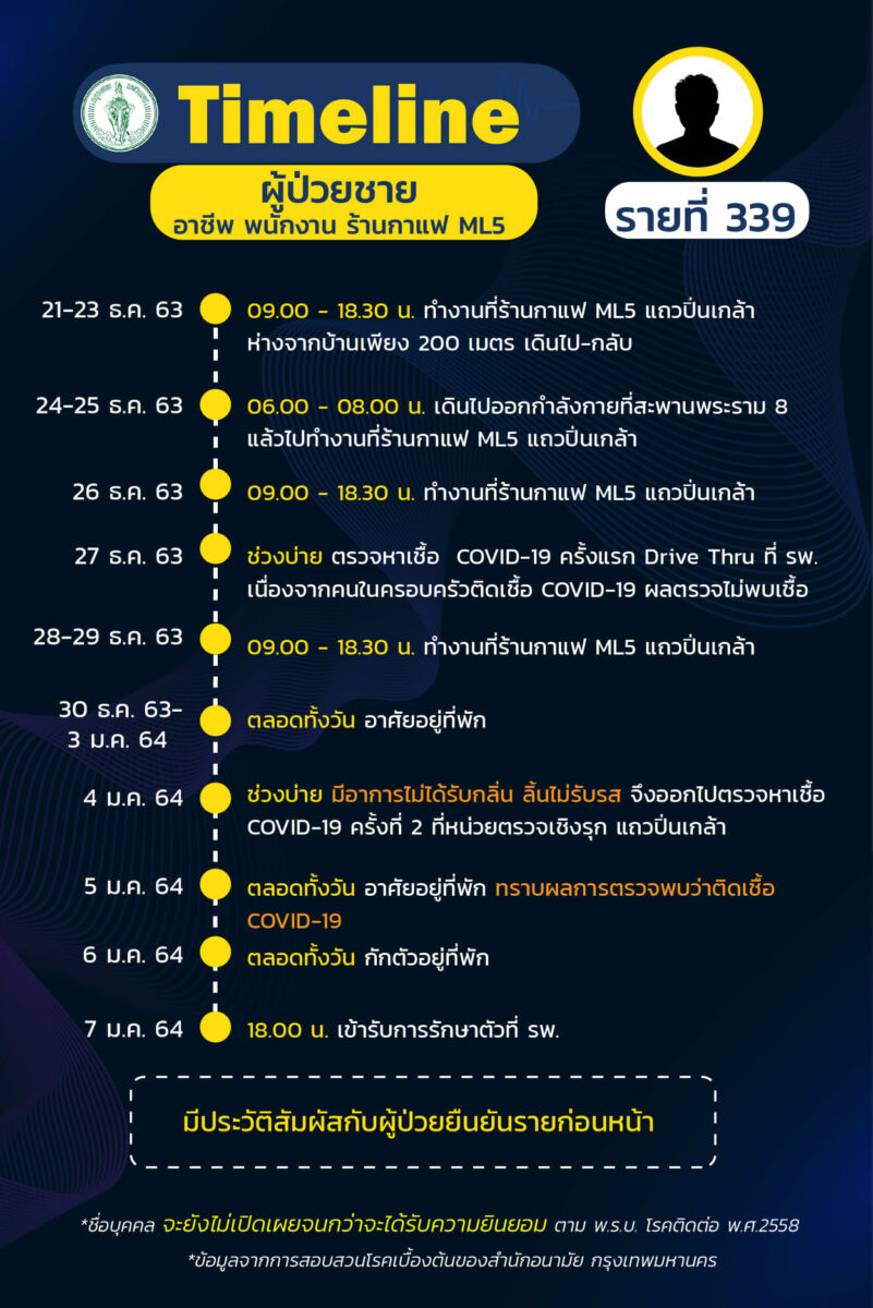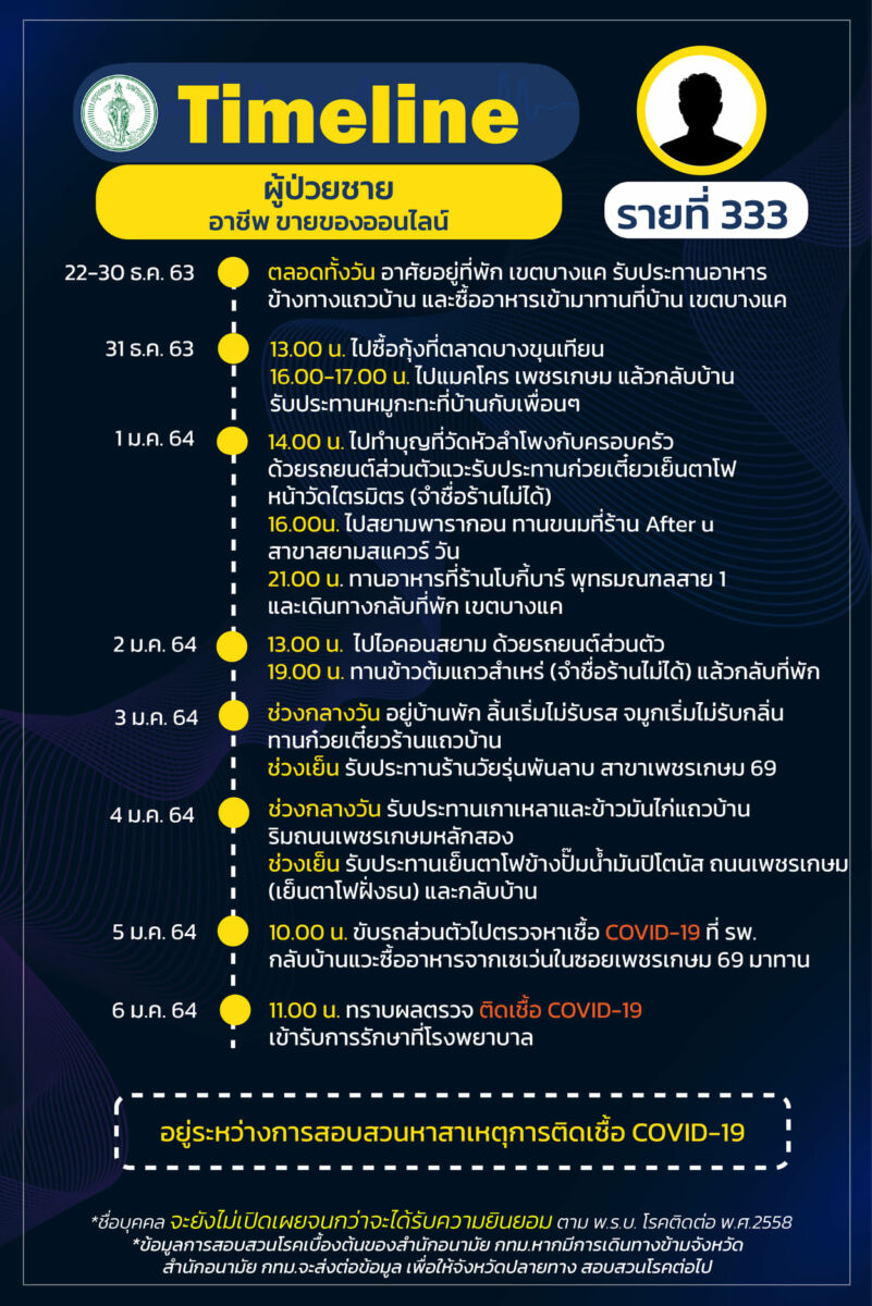 เผย ไทม์ไลน์ ผู้ป่วยโควิด-19 กรุงเทพ เพิ่ม 19 ราย