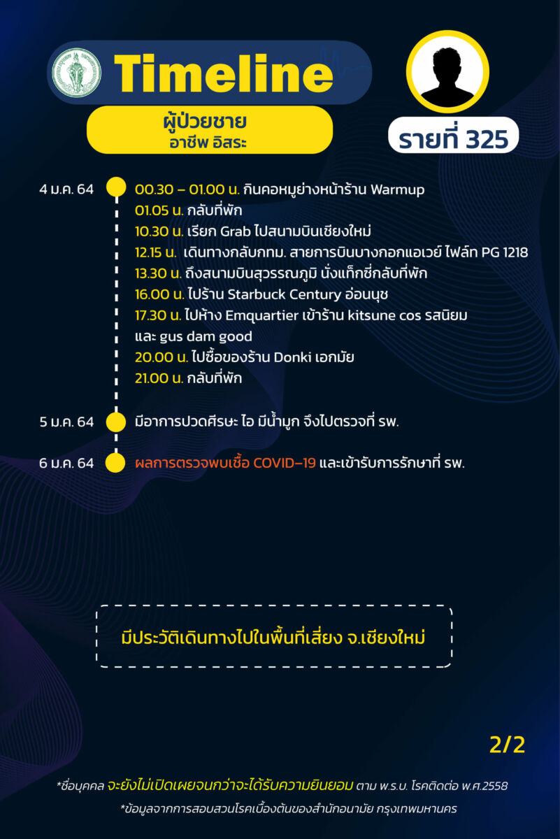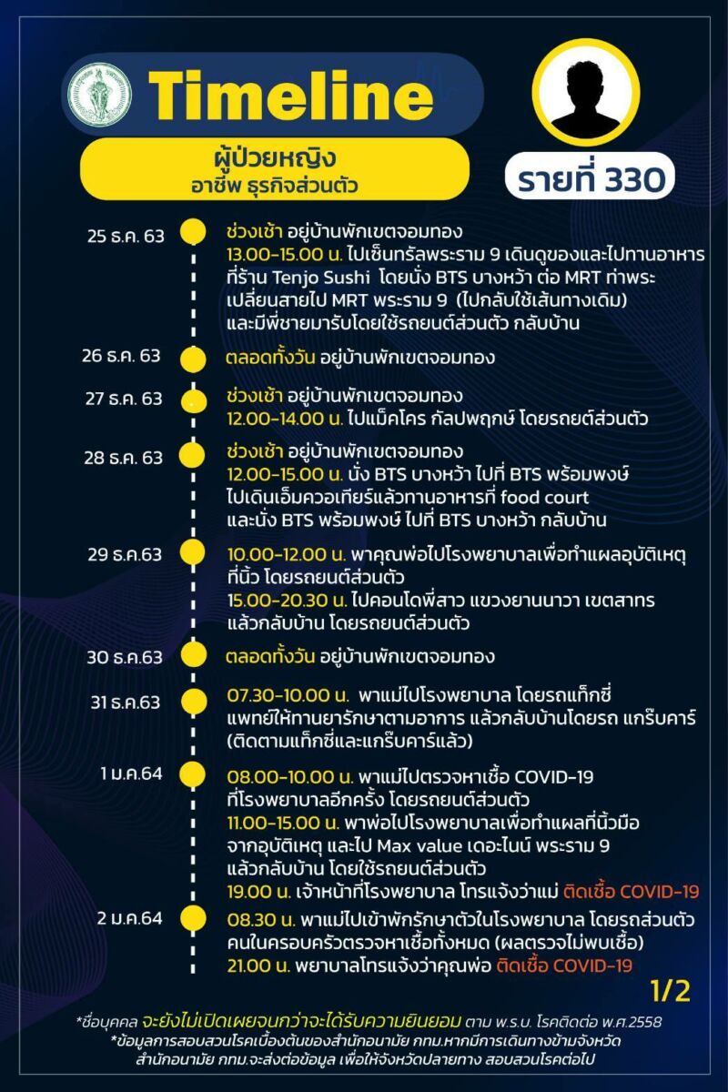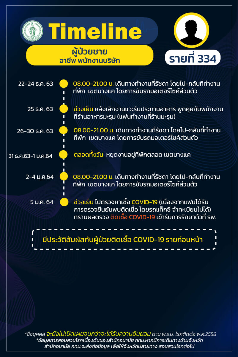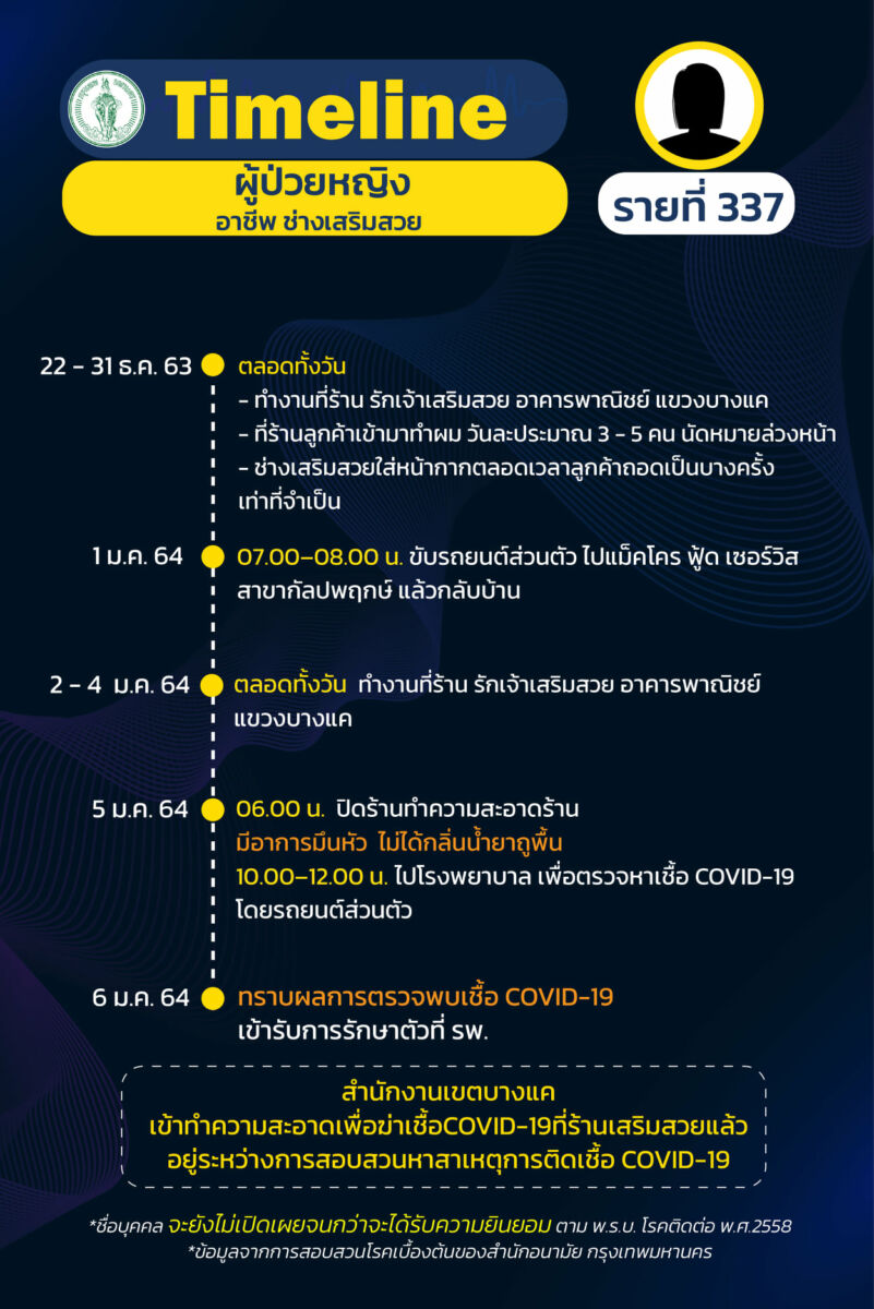 เผย ไทม์ไลน์ ผู้ป่วยโควิด-19 กรุงเทพ เพิ่ม 19 ราย