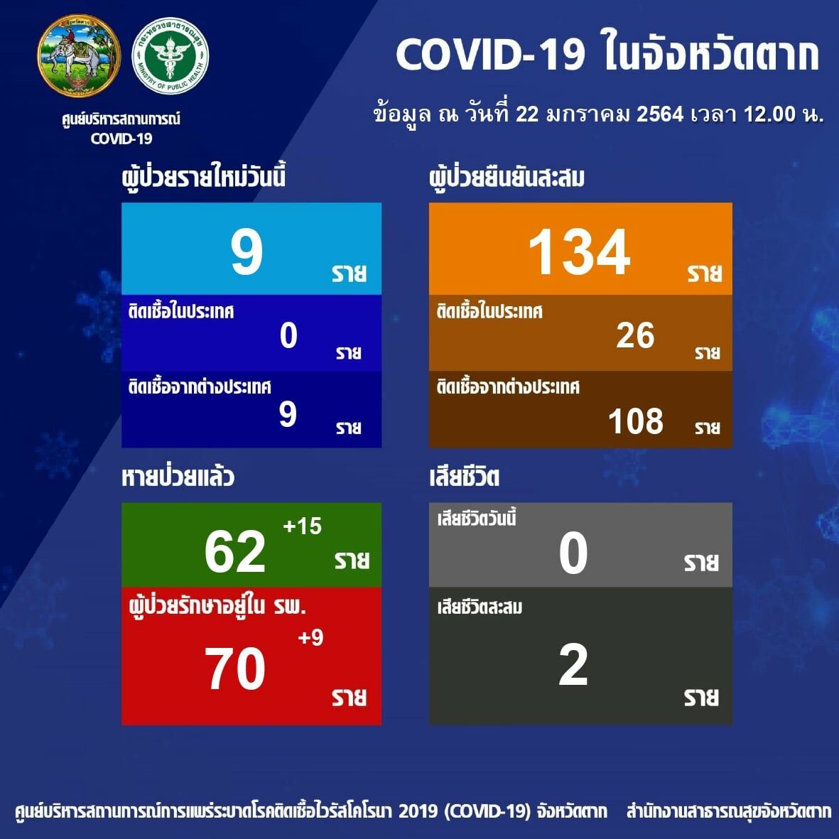 22 ม.ค. 64 ตาก พบ ผู้ป่วยโควิด-19 เพิ่ม 9 ราย