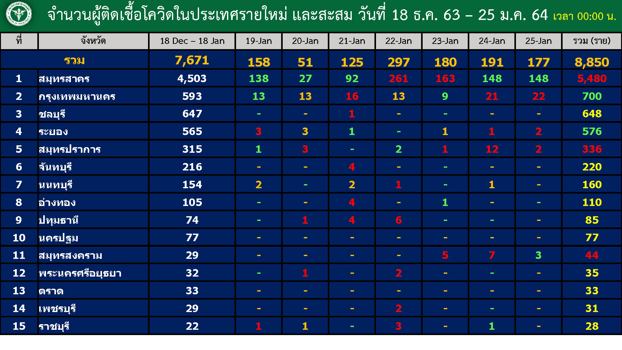 - โควิด-19 ไทย 25 มกราคม 64 พบผู้ป่วยเพิ่ม 187 ราย