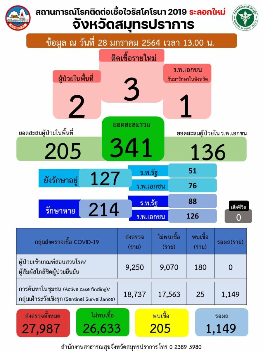 28 ม.ค. 64 สมุทรปราการ พบ ผู้ป่วยโควิด-19 เพิ่ม 3 ราย