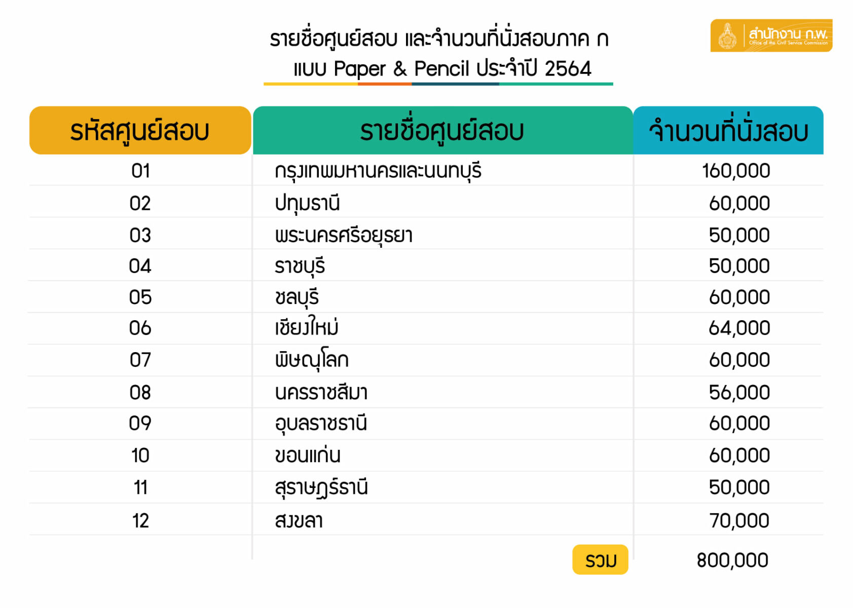 ศูนย์สอบก.พ.64 – รายชื่อศูนย์สอบ และจำนวนที่นั่งสอบภาค ก แบบ Paper & Pencil ประจำปี 2564
