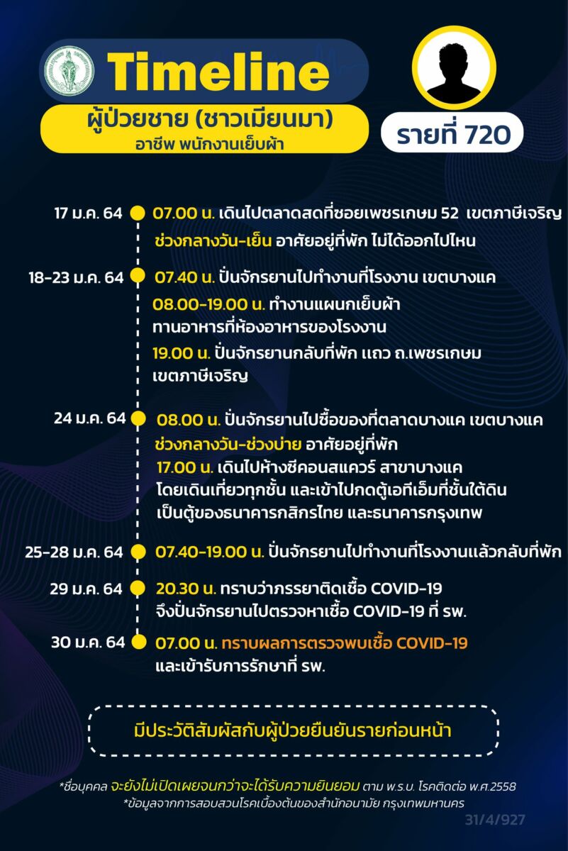 โฆษกกรุงเทพมหานคร เปิดเผย ไทม์ไลน์ ผู้ป่วยโควิด-19 รายที่ 712-720 ระบาดระลอกใหม่ ใน กรุงเทพ มีทั้งชาวไทยและชาวเมียนมา