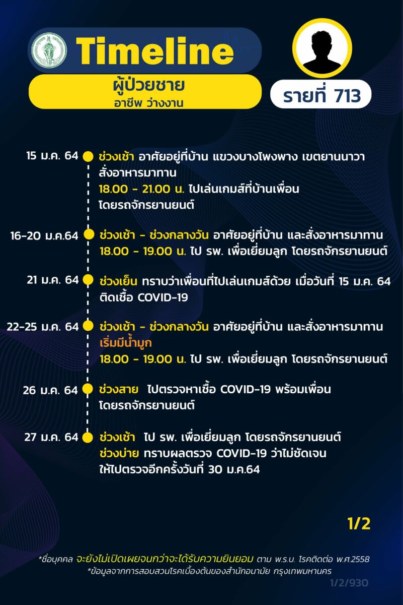 ร.ต.อ.พงศกร ขวัญเมือง โฆษกกรุงเทพมหานคร อัพเดตสถานการณ์การระบาดของโควิด-19 ใน กรุงเทพ โดยเปิดเผย ไทม์ไลน์ ผู้ป่วยโควิด-19 รายที่ 712-720 ระบาดระลอกใหม่ ส่วนใหญ่เป็นผู้ว่างงาน และพนักงานเย็นผ้าย่านภาษีเจริญ
