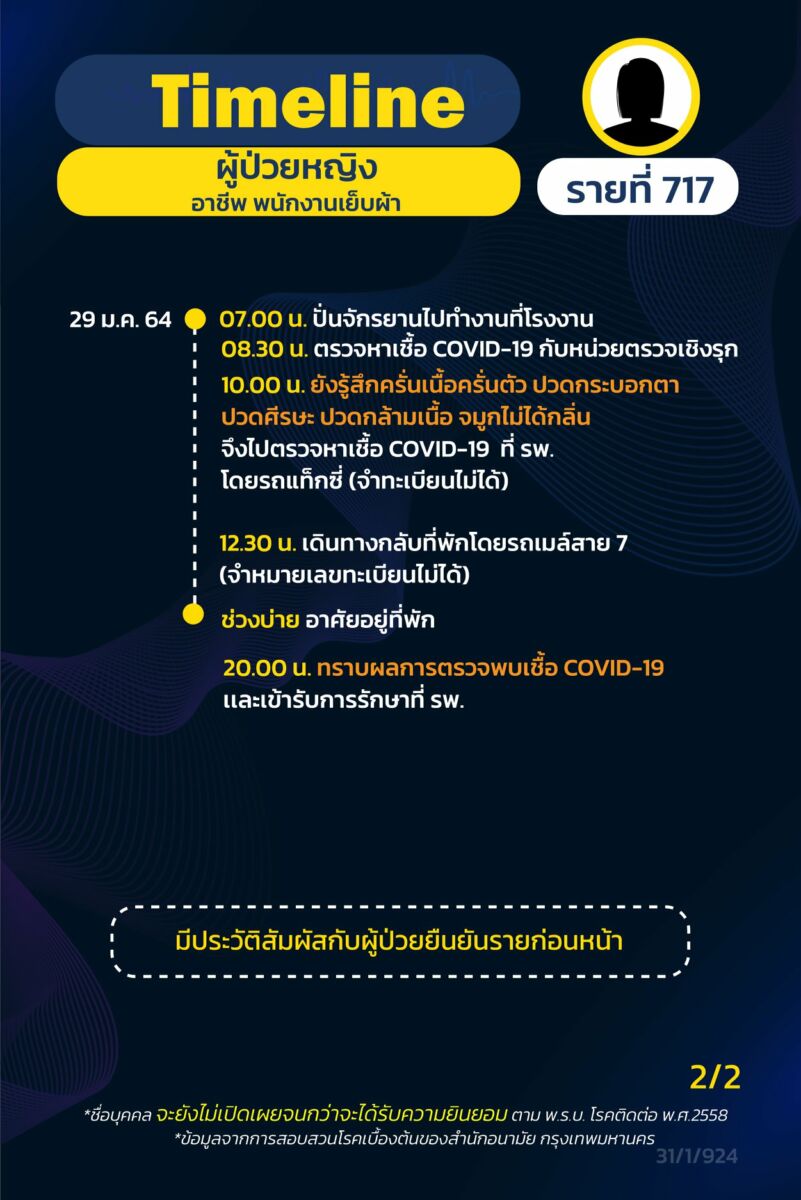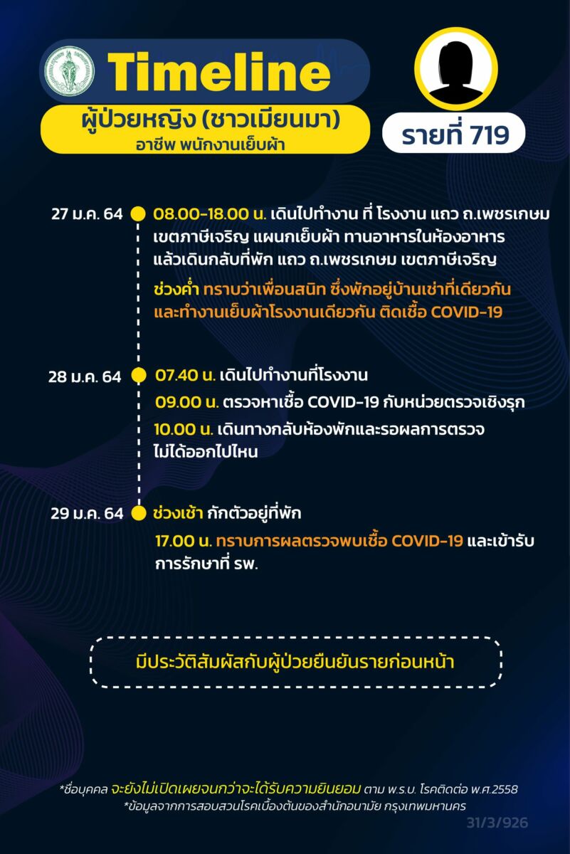 โฆษกกรุงเทพมหานคร เปิดเผย ไทม์ไลน์ ผู้ป่วยโควิด-19 รายที่ 712-720 ระบาดระลอกใหม่ ใน กรุงเทพ มีทั้งชาวไทยและชาวเมียนมา