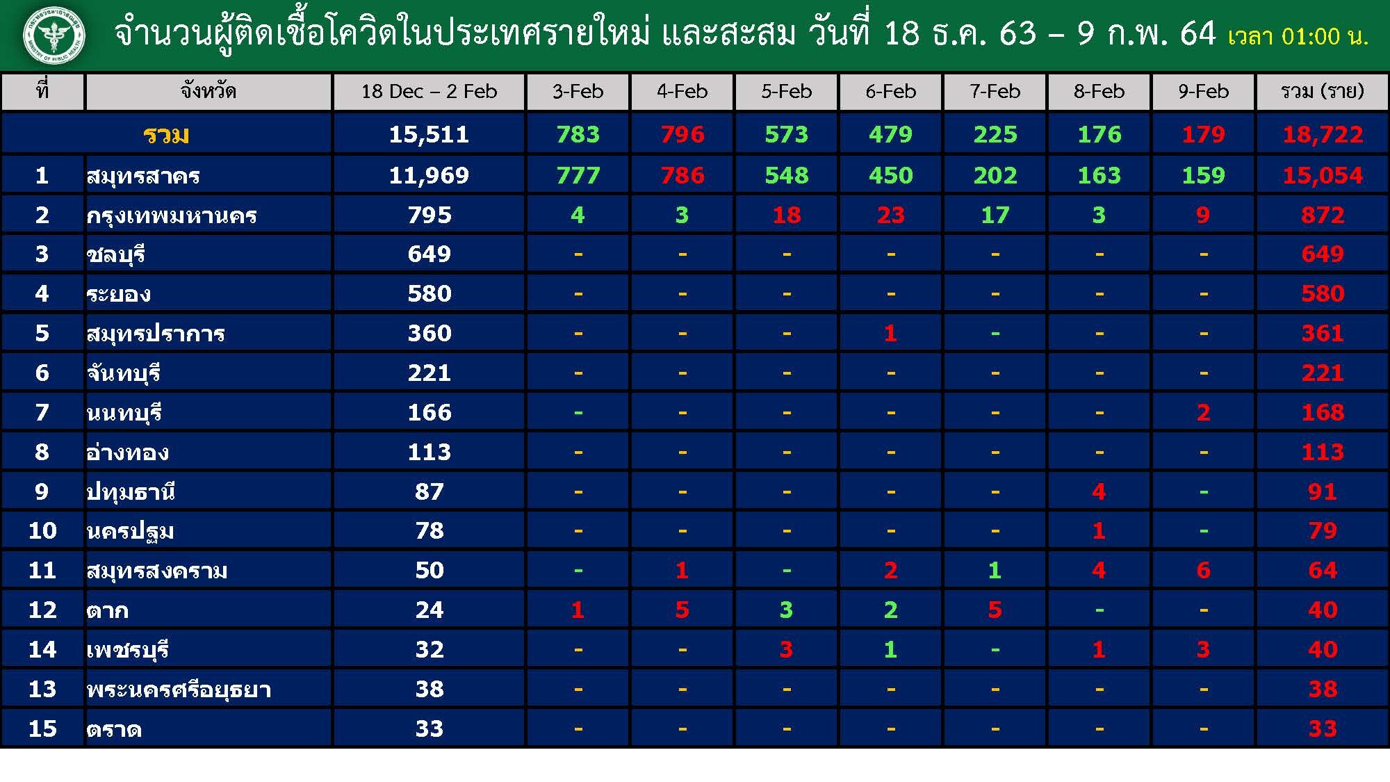 - โควิด-19 ไทย 9 กุมภาพันธ์ 64 พบผู้ป่วยเพิ่ม 189 ราย