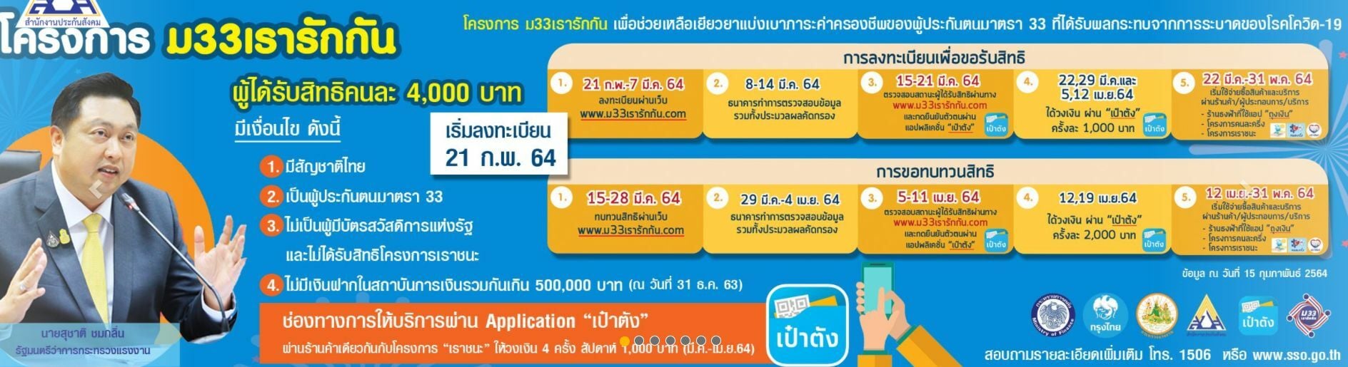 สรุปข้อมูล ม33เรารักกัน.com ช่องทางลงทะเบียนเยียวยา ม.33 เริ่ม 21 ก.พ. 64