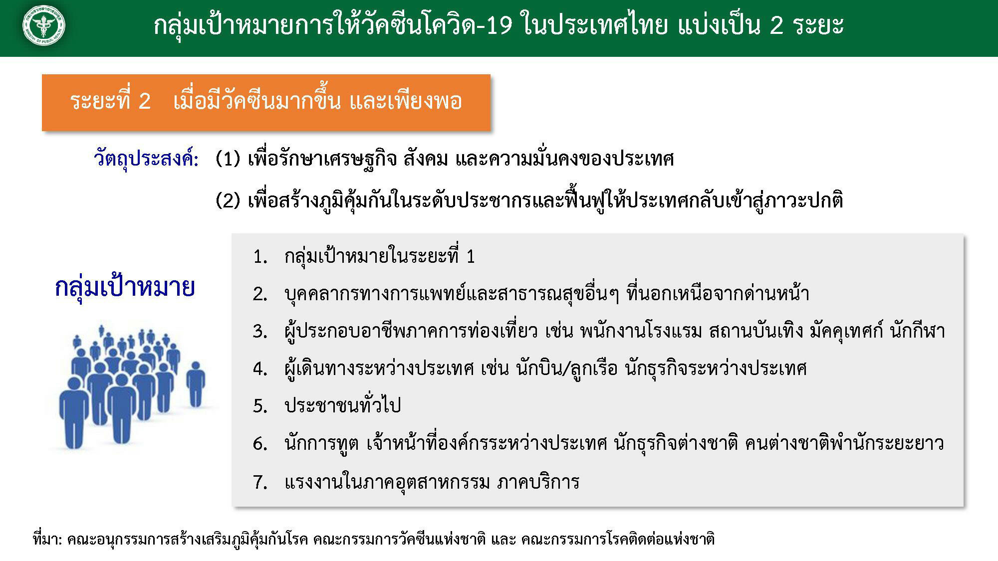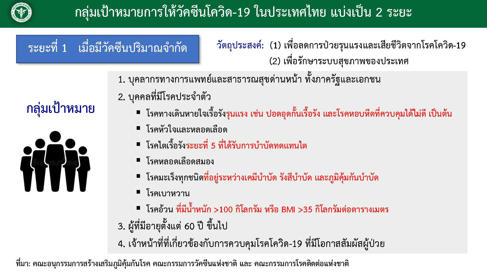 โดยกลุ่มเป้าหมาย 4 กลุ่ม ที่จะได้ฉีดวัคซีนก่อน ประกอบด้วย