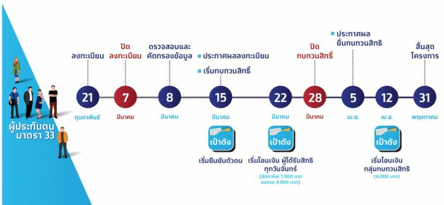 เมื่อวานนี้ (4 มี.ค.) นายทศพล กฤตวงศ์วิมาน เลขาธิการสำนักงานประกันสังคม กระทรวงแรงงาน เปิดเผยถึงการดำเนินงานโครงการ ม33เรารักกัน ว่า ผู้ประกันตนมาตรา 33 สามารถลงทะเบียนผ่านเว็บไซต์ www.ม33เรารักกัน.com เพื่อรับสิทธิเงินช่วยเหลือเยียวยาค่าครองชีพจากรัฐบาล คนละ 4,000 บาท ซึ่งได้เปิดให้ลงทะเบียนมาตั้งแต่วันที่ 21 กุมภาพันธ์ – 7 มีนาคม 2564