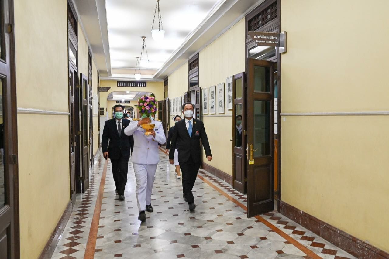 ผู้อำนวยการสำนักงานบริหารกิจการเหล่ากาชาด สภากาชาดไทย เชิญแจกันดอกไม้พระราชทานจากพระเทพฯ เยี่ยมผู้ว่าราชการจังหวัดสมุทรสาคร