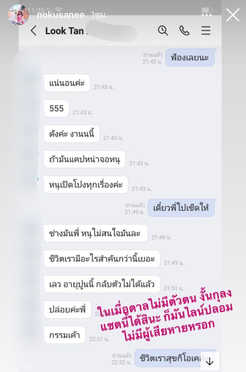 พร้อมทั้งยังโพสต์ข้อความและแชทหลุดของ ตาล สาวโลกใบที่ 1 ผ่านทางอินสตาแกรมสตอรี่ เผย ผู้หญิงที่ยอมให้สามีตัวเองไปหลอกผู้หญิงคนอื่นให้แต่งงานด้วยเพราะอยากได้เงินหลายล้านนี่ต้องเลวขนาดไหน ?